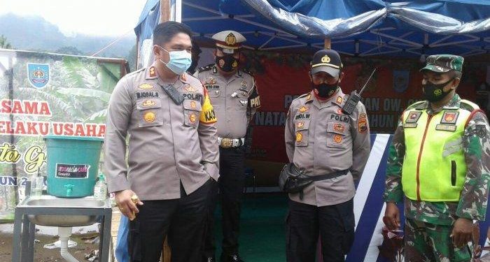 Kapolres Tegal, AKBP Muhammad Iqbal Simatupang, didampingi Kabagops Polres Tegal, AKP Aries Heriyanto, beserta jajarannya melakukan pantauan di area objek wisata Guci, pada Rabu (30/12/2020) sore.