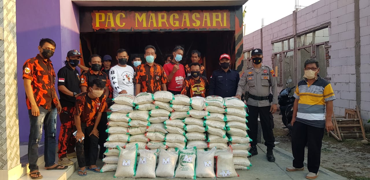 Ketua PAC Pemuda Pancasila Margasari, Muhammad Nanang Trianto mengatakan, beras ini merupakan bantuan dari PT Syang Hung Tah yang hendak membangun pabrik sepatu di Desa Margaayu. Bantuan diberikan kepada masyarakat yang berada di lingkungan lahan pembangunan pabrik. Setiap kepala keluarga mendapatkan 1 paket atau 10 kilogram beras.