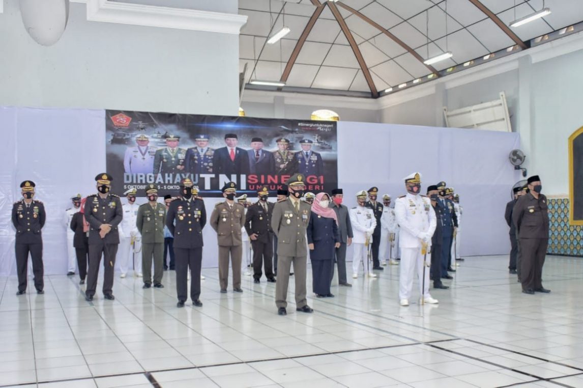 Hadir mengikuti jalannya upacara tersebut dari Aula Sardjoe Markas Komando Lanal Tegal Tegalsari Kec. Tegal Barat Kota Tegal, Bupati Tegal Umi Azizah dan sejumlah anggota Forum Komunikasi Pimpinan Daerah (Forkopimda) Kabupaten Tegal. Turut hadir pula dalam upacara ini, WaliKota Tegal dan Wakil Walikota serta Forkopimda Kota Tegal dan perwakilan Kodim dan Polres se- eks Karisidenan Pekalongan dengan peserta upacara 20 orang. Tema peringatan Hari Ulang Tahun TNI Tahun 2020 ini adalah “Sinergi Untuk Negeri”.