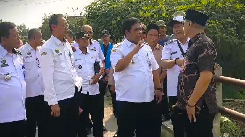 Wakil Bupati Tegal Ahmad Kholid saat meninjau kondisi Jembatan Kali Cenang di Desa Jatimulya, Kecamatan Suradadi pada acara Bupati Tilik Desa, Rabu (02/07/2025).