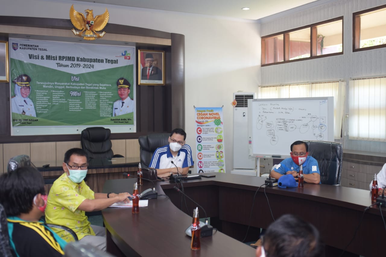 SLAWI, korantegal.com – Palang Merah Indonesia (PMI) Kabupaten Tegal melakukan audiensi bersama Wakil Bupati Tegal Sabilillah Ardie selaku Ketua Umum Bulan Dana dan Bulan Pelajar Palang Merah Indonesia (PMI) 2020 serta Inspektorat Kabupaten Tegal untuk memperjelas Standar Operasional Prosedur (SOP) Bulan Dana dan Bulan Pelajar 2020, Jumat (25/09/2020) pagi di Ruang Rapat Sekda Kabupaten Tegal. Menurut Ketua Pengurus PMI Kabupaten Tegal Iman Sisworo hal ini perlu dilakukan karena banyaknya kendala yang terjadi selama pemungutan Bulan Dana PMI tahun 2020 di Kabupaten Tegal, mulai dari komentar perorangan hingga kritikan beberapa lembaga kepada PMI.
