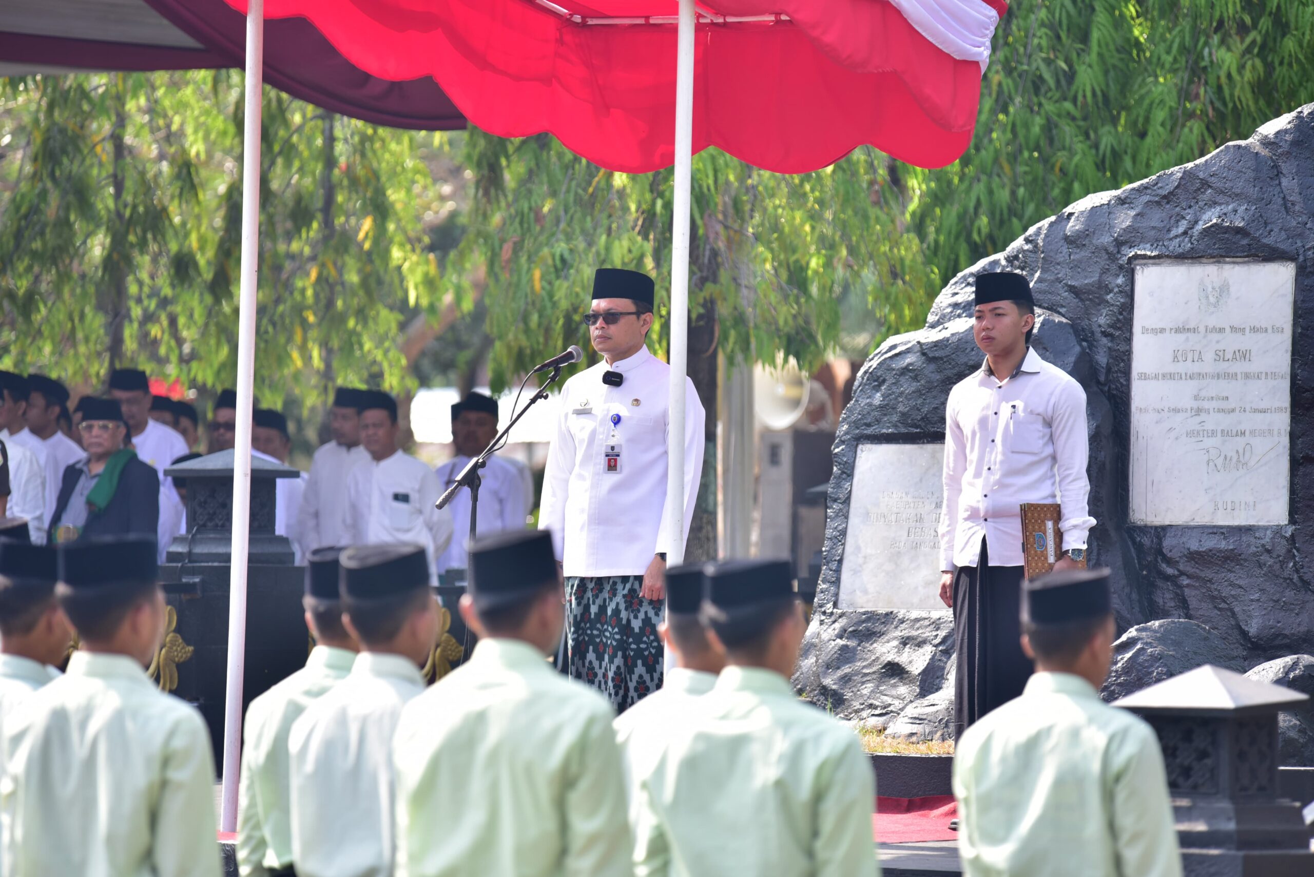 Hal tersebut disampaikannya saat memimpin Upacara Hari Santri Nasional 2024 di lapangan kantor Pemda Kabupaten Tegal, Selasa (22/10/2024) pagi.