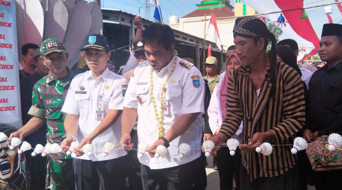 Pemotongan tali berhiaskan kok oleh Wakil Bupati Tegal Ahmad Kholid menjadi penanda Pembukaan Festival Shuttlecock ke-4 di Desa Lawatan, Kecamatan Dukuhturi, Rabu (13/08/2025).