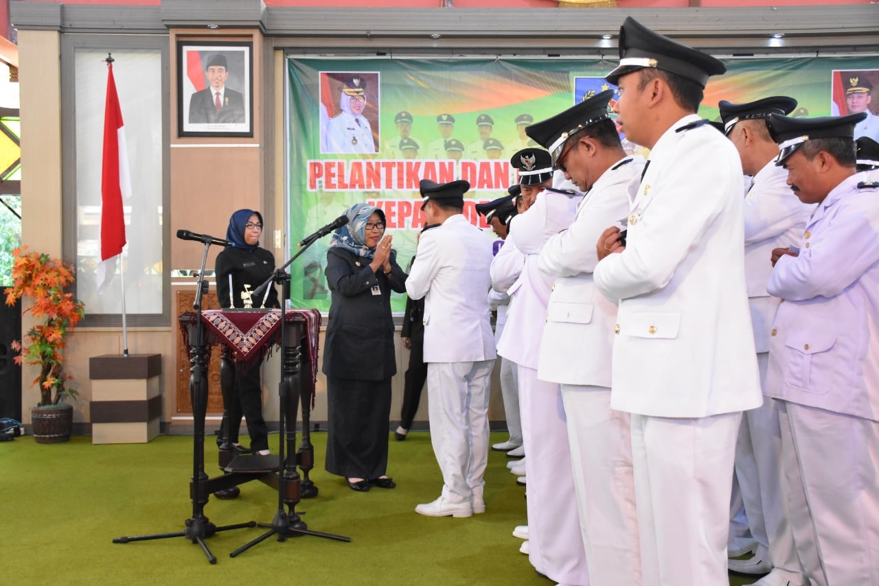 SLAWI, korantegal.com – Bupati Tegal Umi Azizah melantik 63 Kepala Desa hasil pemilihan Pilkades serentak gelombang III Tahun 2019. Pelantikan itu berlangsung di Pendopo Amangkurat Setda Pemkab Tegal pada Rabu (5/2) pagi. Usai melantik dan mengambil sumpah jabatan, Umi mengajak kepala desa yang baru untuk mengambil perannya dalam hal mencegah supaya anak-anak tidak putus sekolah.