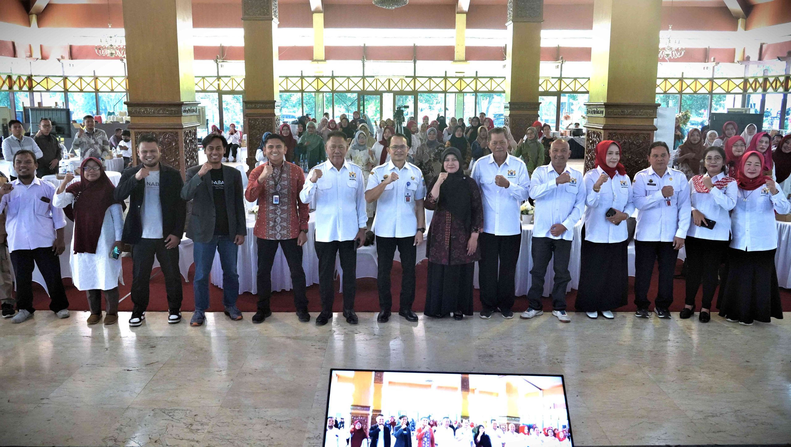 Sekretaris Daerah Kabupaten Tegal Amir Makhmud (tengah) berfoto bersama jajaran Kantor Perwakilan Bank Indonesia Tegal dan peserta pelaku UMKM pada acara Capacity Building, di Pendopo Amangkurat, Rabu (06/08/2025).